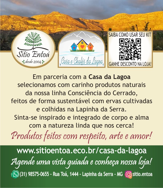 * Desejamos que você tenha uma experiência muito agradável com nossos produtos! São artesanais, feitos com ervas medicinais do cerrado e da cultura raizeira, plantadas e colhidas de forma sustentável na Lapinha da Serra, com respeito, arte e amor!