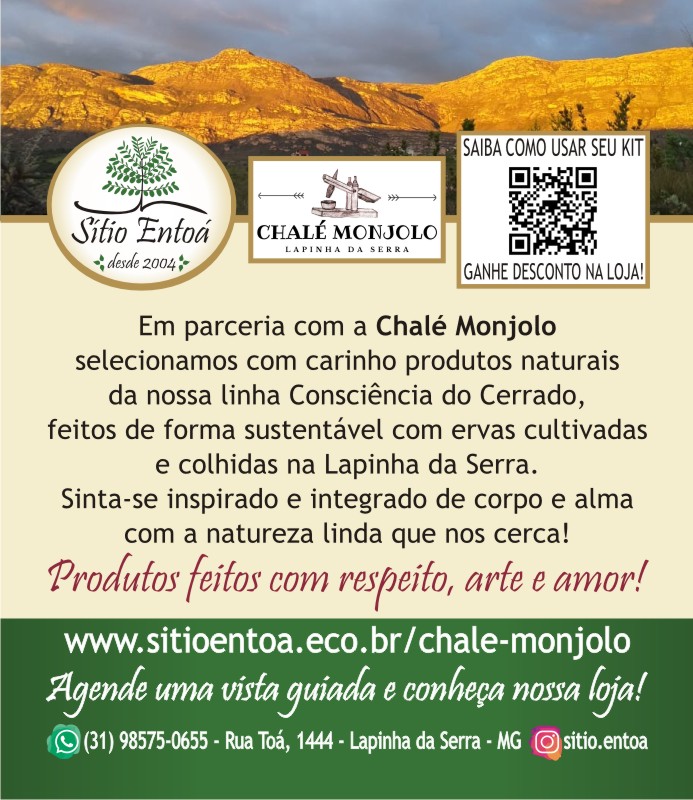 * Desejamos que você tenha uma experiência muito agradável com nossos produtos! São artesanais, feitos com ervas medicinais do cerrado e da cultura raizeira, plantadas e colhidas de forma sustentável na Lapinha da Serra, com respeito, arte e amor!
