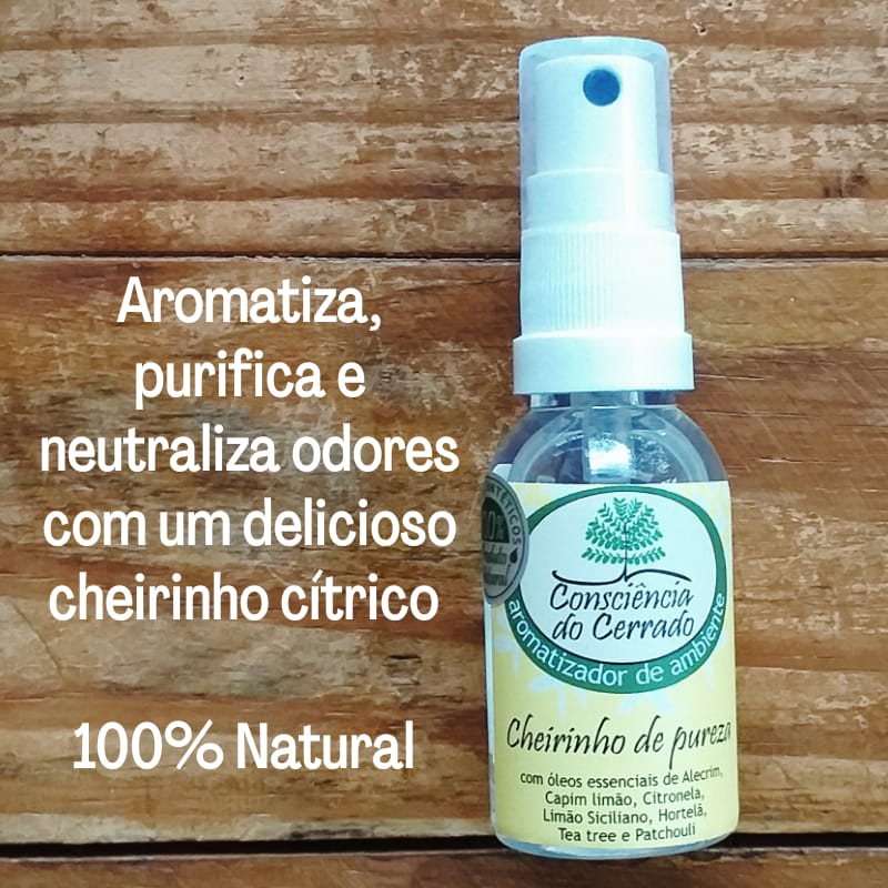Aromatizador Pureza e Frescor: é uma sinergia com vários óleos essenciais e aroma predominante cítrico. Refresca e purifica o ambiente, neutraliza odores e ainda pode higienizar superfícies, pois tem alcolatura a 70°.