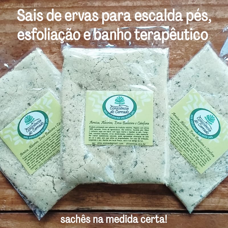 Modo de usar: Para esfoliação corporal durante o banho, use uma pequena quantidade nas mãos e massageie o corpo, enxágue após o uso. Para escalda pés, use um sachê em uma bacia com água morna pra quente, mergulhe os pés por 15 minutos.