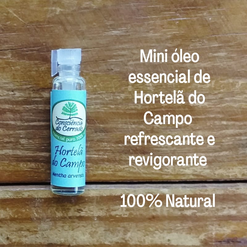 Mini óleo essencial de Hortelã do Campo: atua nas vias respiratórias facilitando a respiração e ampliando o rendimento em exercícios físicos como caminhadas e corridas. Além disso refresca e purifica o ambiente.