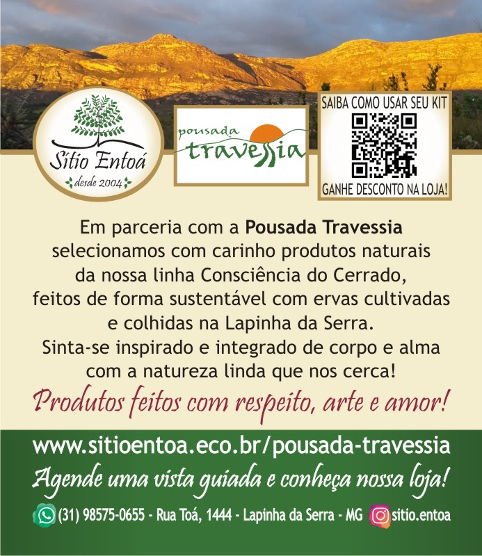 * Desejamos que você tenha uma experiência muito agradável com nossos produtos! São artesanais, feitos com ervas medicinais do cerrado e da cultura raizeira, plantadas e colhidas de forma sustentável na Lapinha da Serra, com respeito, arte e amor!