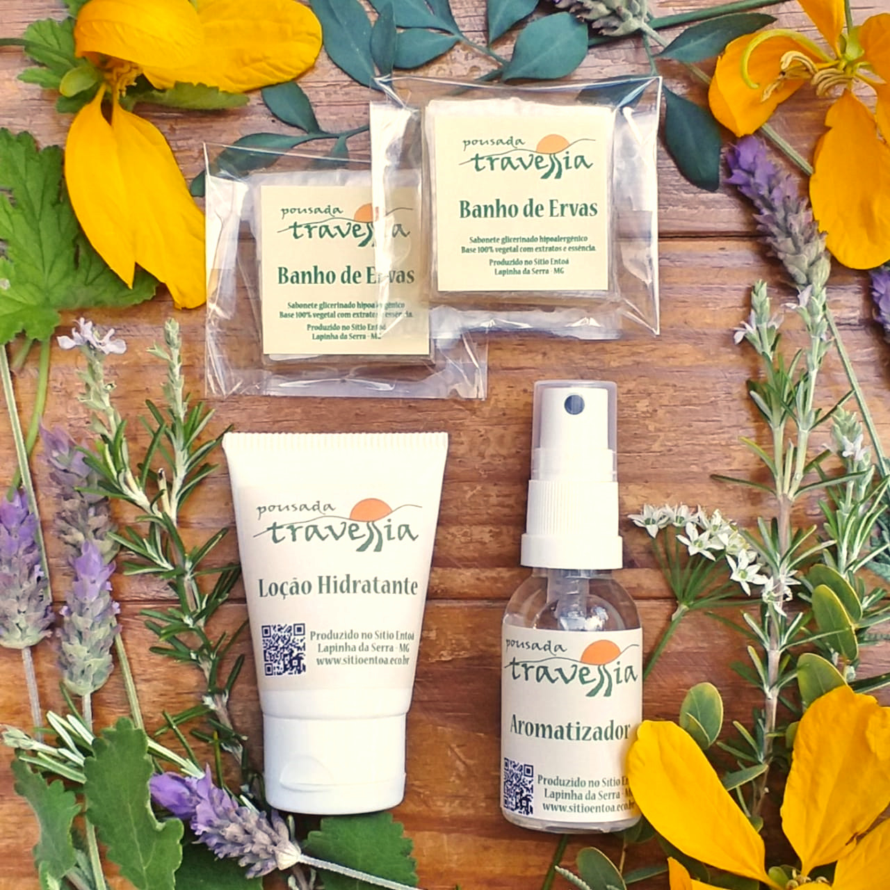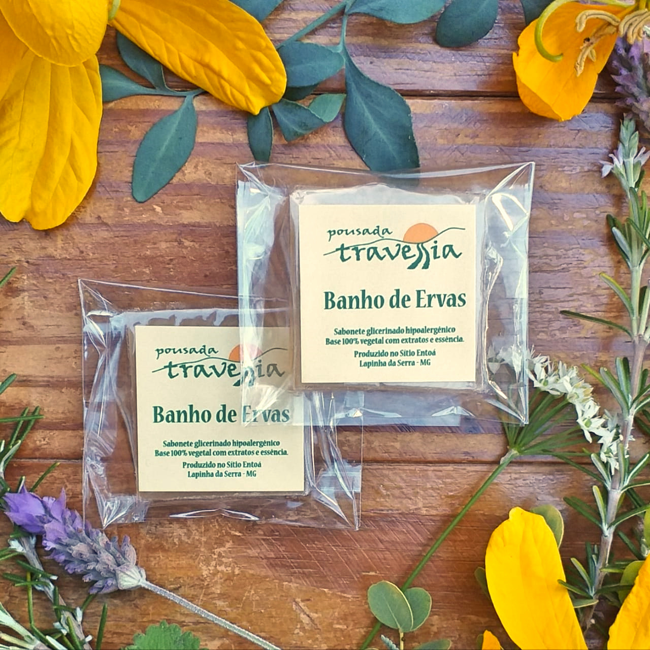 Sabonetes para viagem: Desenvolvido com carinho para os hóspedes da POUSADA TRAVESSIA! São feitos artesanalmente sem lauril, corantes ou parabenos, com base glicerinada hipoalergênica 100% natural, extratos naturais produzidos no Sítio Entoá e aroma delicioso para você curtir um banho gostoso, saudável e ecológico!
