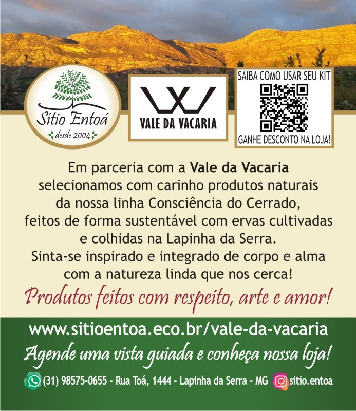 * Desejamos que você tenha uma experiência muito agradável com nossos produtos! São artesanais, feitos com ervas medicinais do cerrado e da cultura raizeira, plantadas e colhidas de forma sustentável na Lapinha da Serra, com respeito, arte e amor!